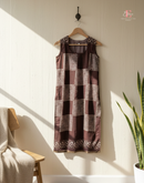 Eterna Urban Grid Kurti – Brown White Geometric Pattern Printed Sleeveless Kurti