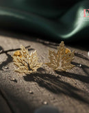 Handcrafted in premium brass, these intricately carved leaf studs capture the elegance of nature with a warm golden finish. Lightweight and effortlessly stylish.