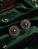 Inspired by ancient shield motifs, these oxidised round studs blend traditional artistry with modern elegance. The intricate dotted detailing and concentric mandala-like design add depth and character, making them a...
