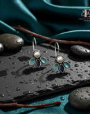 A graceful blend of ocean hues and timeless elegance, these earrings feature a luminous pearl centre surrounded by delicate aqua and deep navy petal stones. The floral-inspired design brings a soft, feminine charm, while the oxidised silver detailing adds depth and a handcrafted appeal. Lightweight and effortlessly stylish, this pair transitions beautifully from ethnic wear to contemporary outfits, making it a versatile must-have in your collection.
