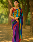 Eterna Rainbow Handloom Saree – Multicolour Striped Khadi Cotton Elega