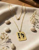 A handcrafted brass pendant featuring a graceful Warli-inspired duo, symbolising togetherness and timeless storytelling. Artistic, meaningful, and beautifully minimal.