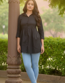 - Eterna Black Classic Top – Gathered Shirt-Style Minimal Cotton Top