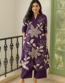 A premium cotton set in deep purple featuring bold floral motifs. A striking yet comfortable ensemble for effortless style.