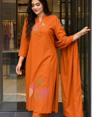 - Eterna Orange Handloom Set – Pure Cotton Minimal Circle Motif Kurta Set