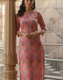 A soft, warm-pink kurti adorned with floral designs — ideal for everyday comfort with feminine elegance.