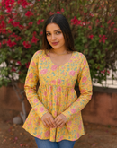 - Eterna Yellow Blossom Top – Pink Floral Printed Cotton Long-Sleeve Top