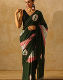 Eterna Deep Forest Bloom Shibori Mul Cotton Saree – Green & Pink Harmony